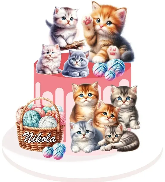 Wydruk CUKROWY masa KOTKI kotek kot tort urodziny zestaw POSTACI tekst